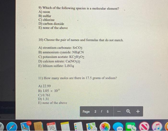 A neon B sodium C chlorine D carbon dioxide E none of the above Answer. Which of the following species is a molecular element ie. We have Iajuddin on oxygen so both of these exist as the dye Atomics.